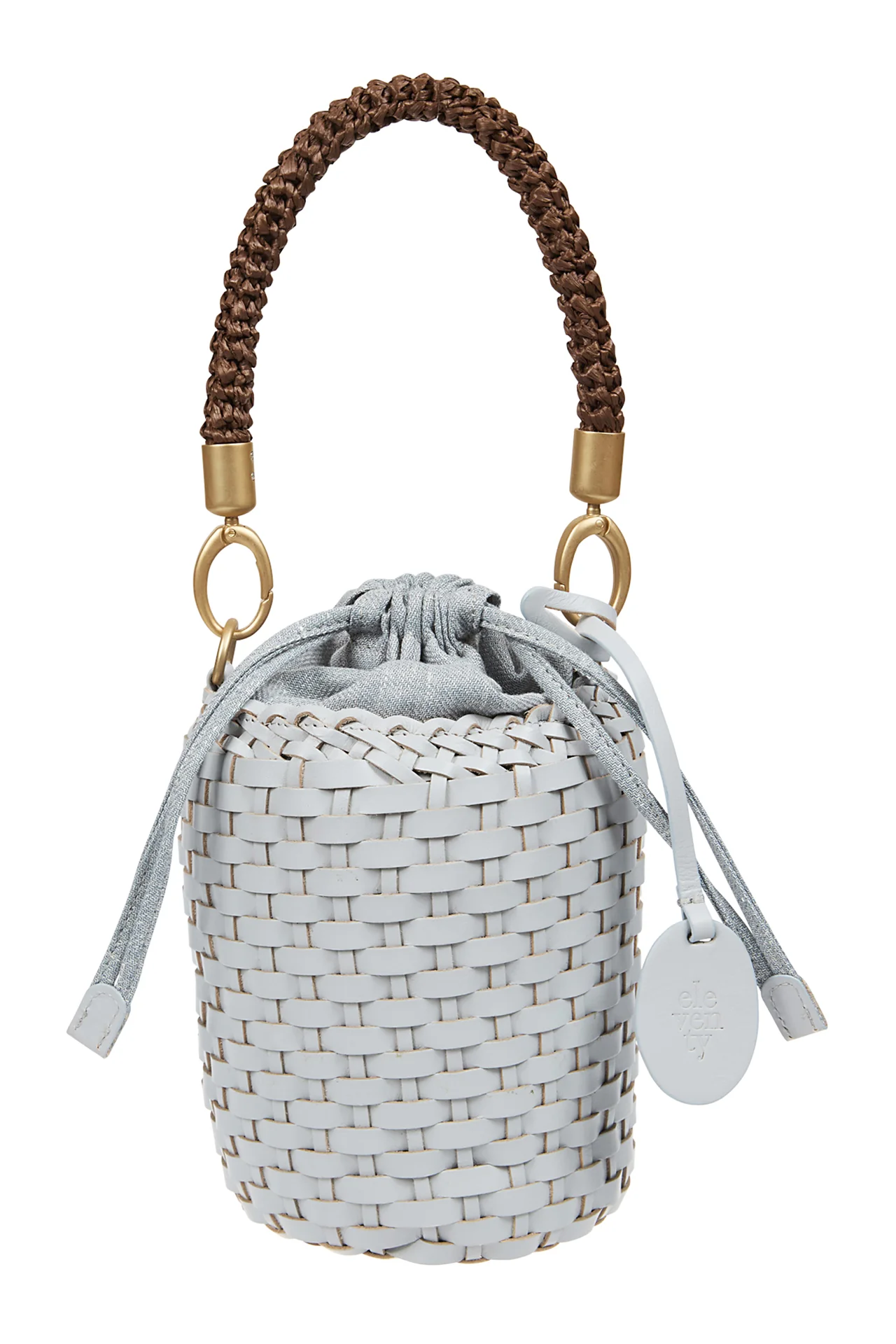 Borsa secchiello realizzata con pelle di bufalo tinto a immersione, abbinata a un tessuto materico per la chiusura. Questo accessorio dal design raffinato e contemporaneo offre una combinazione perfetta di resistenza e eleganza.Composizione