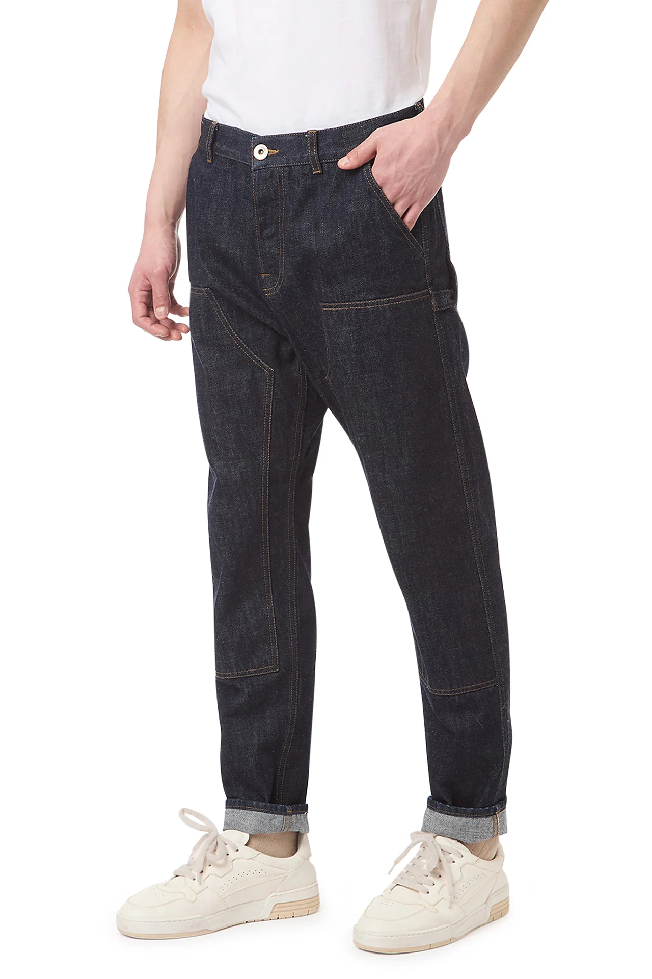 Pantalone 5 tasche d'ispirazione workwear dalla vestibilitĂ rilassata, realizzato in denim di cotone tinto in capo. Le tinture utilizzate consentono un significativo risparmio idrico. Inoltre, i finissaggi sono realizzati senza l'impiego di sostanze chimiche nocive, dimostrando l'impegno di Eleventy per la sostenibilitĂ e la qualitĂ impeccabile. Arricchisce il capo il delicato fiore Daisy, segno iconico del jeans Eleventy, impresso sui sacchi tasca.Select size