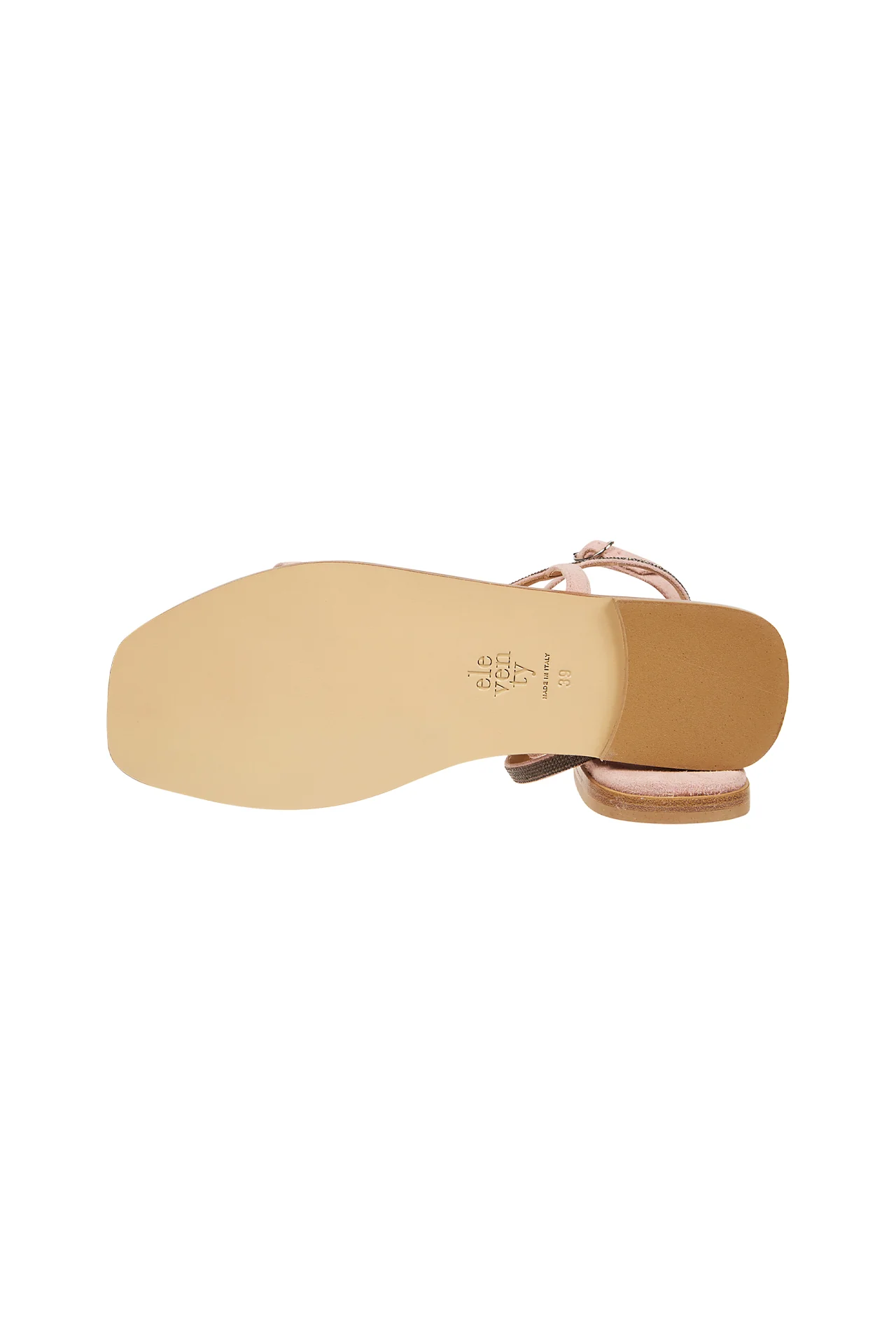 Sandalo basso, realizzato in suede scamosciato e disponibile in tutti i colori della collezione, perfetto per essere indossato in molteplici occasioni estive. Le fasce completamente ricoperte di strass aggiungono un tocco di luce e rendono questo sandaloComposizione