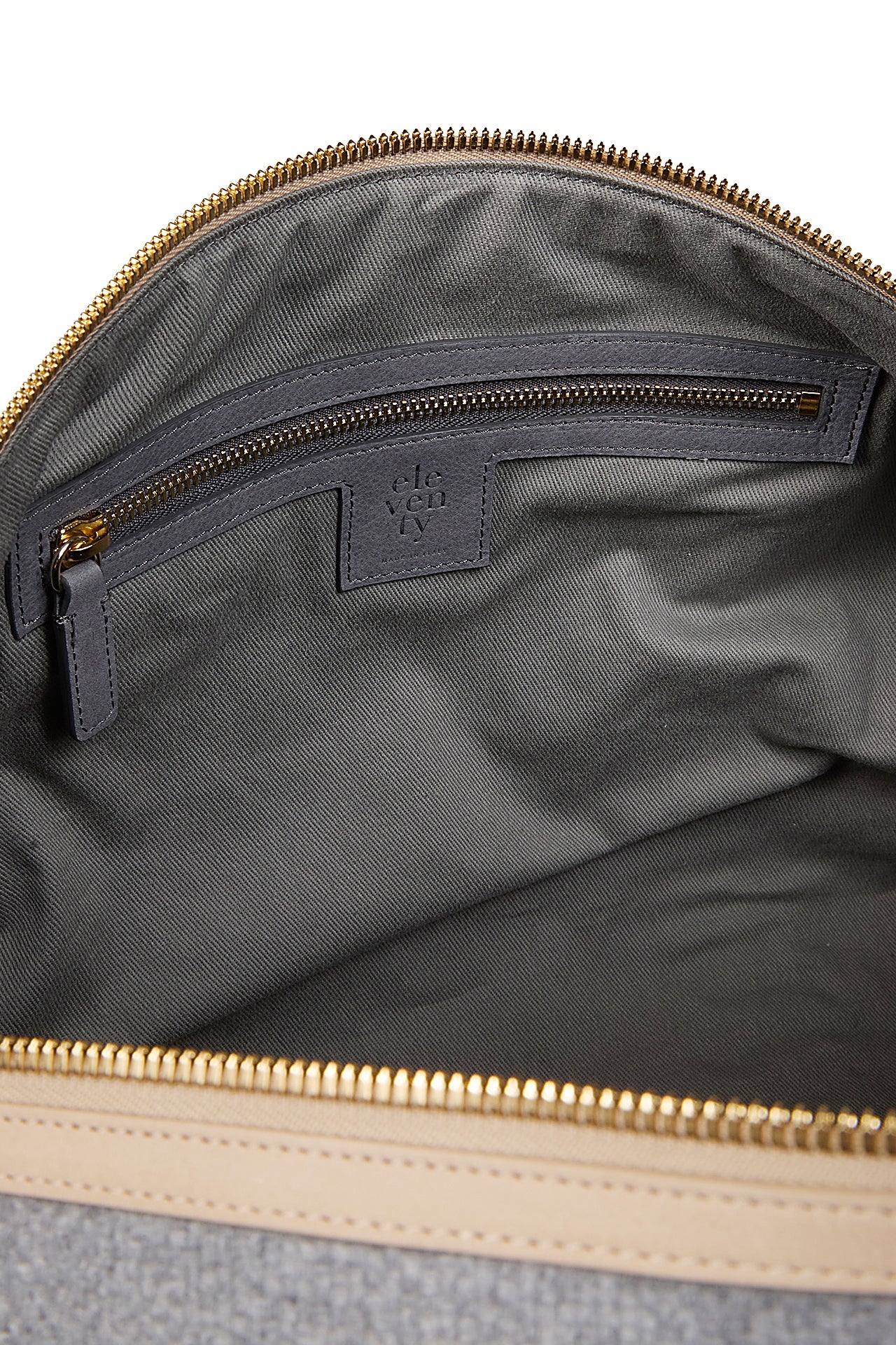 Borsone in tela di lana con inserti in pelle bovina e minuteria di colore oro. Il pellame di alta qualità si presenta estremamente morbido al tatto. I nastri regimental in cotone e la cura nella scelta dei materiali conferiscono un tocco chic e distintivo all’accessorio. Altezza 27 cm , larghezza 55 cm , profondità 24 cm.